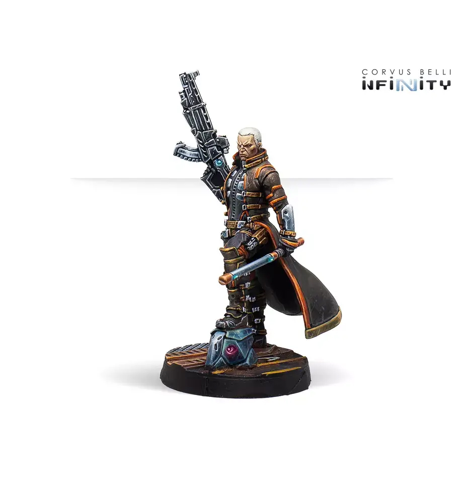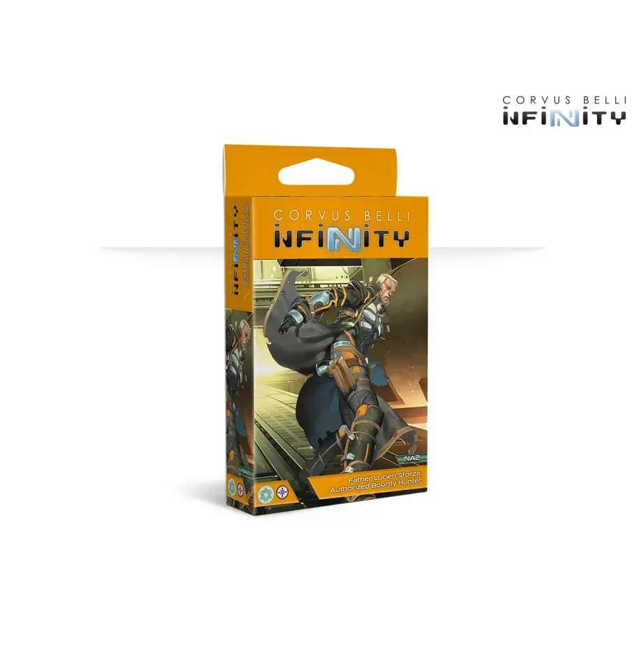Набір Father Lucien Sforza, Authorized Bounty Hunter пропонує вам необхідну кількість деталей з яких ви зможете зібрати 1 модель героя для вашої армії NA2.