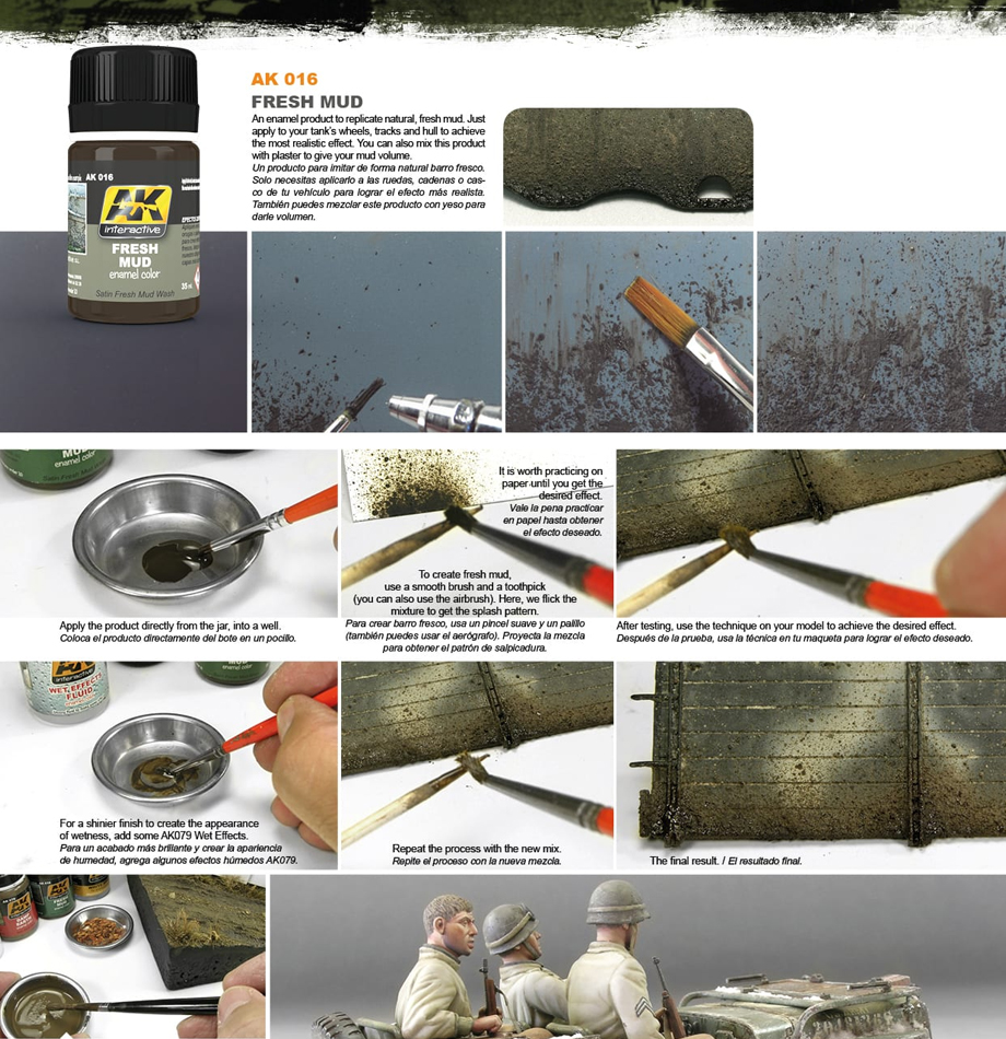 Емалева суміш Fresh Mud дозволить вам відтворити реалістичні ефекти бруду на ваших моделях. Вона легко наноситься і має дуже реалістичний колір. Щоб використати Fresh Mud нанесіть його пензлем або за допомогою аерографа, а потім розтушуйте чистим пензлем, змоченим розчинником емалі. Щоб досягти максимально реалістичного ефекту просто нанесіть на колеса, гусениці та корпус автомобіля цю суміш.