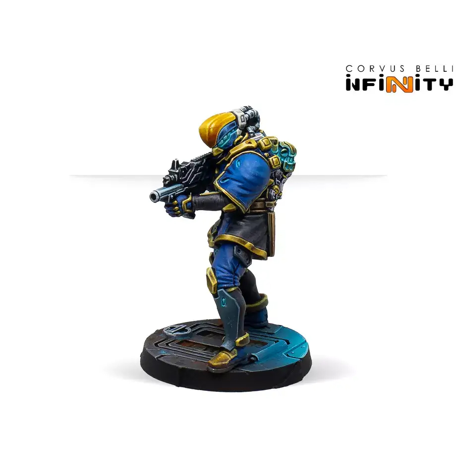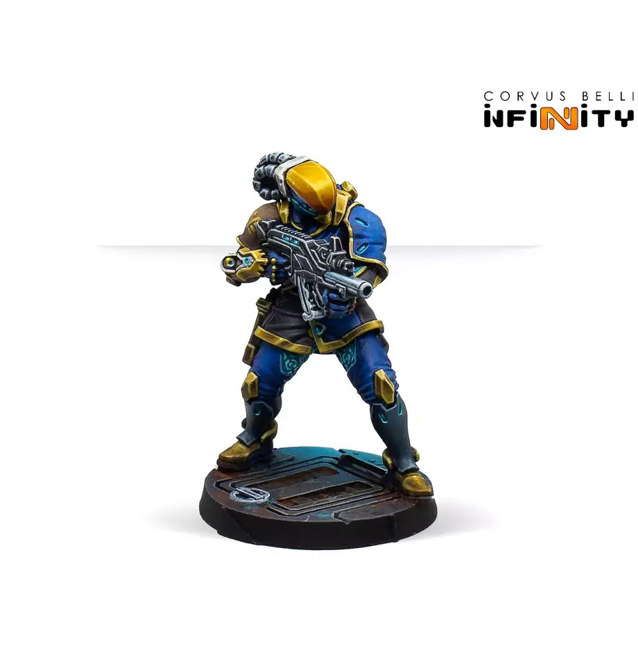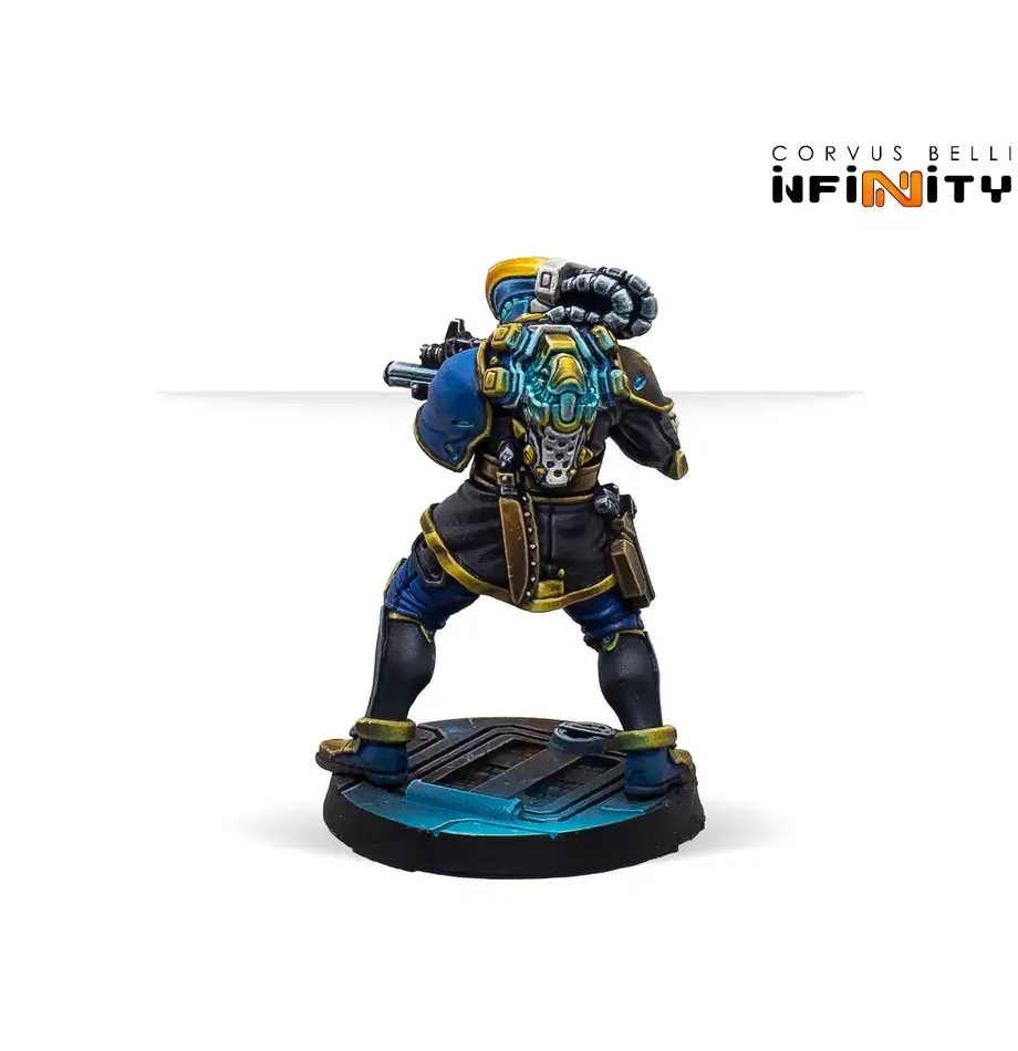 Набір O-12: Raveneye Officer (Submachine Gun, E/Marat) пропонує вам необхідну кількість деталей з яких ви зможете зібрати 1 модель героя для вашої армії Ariadna.
