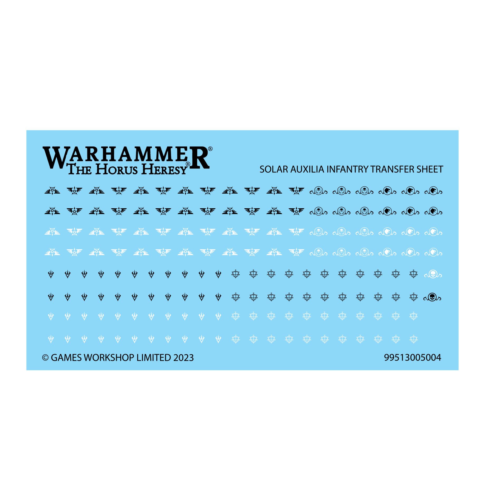 В комплекті набору ви додатково отримаєте 2 круглі бази Citadel діаметром 60 мм, 25 круглих баз Citadel діаметром 25 мм, 2 аркуші декалей Solar Auxilia Infantry Transfer Sheets, а також 2 аркуші декалей Solar Auxilia Vehicle Transfer Sheets.