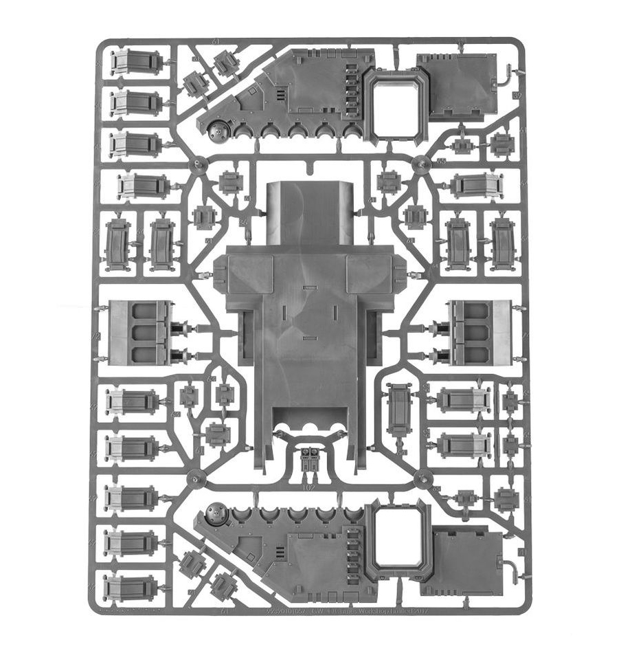 Модель бронетранспортера з набору Space Marines: Primaris Repulsor постачається непофарбованою і потребує складання.