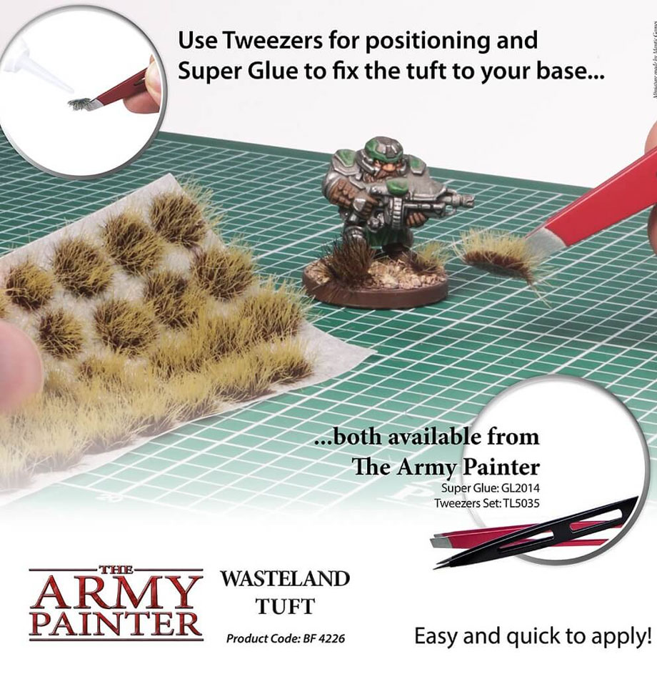 Tuft Battlefields: Wasteland Tuft – дуже простий у використанні та швидко кріпиться за допомогою супер клею, а різноманіття пучків представлених у трьох різних розмірах допоможе вам створювати надзвичайно реалістичні бази.