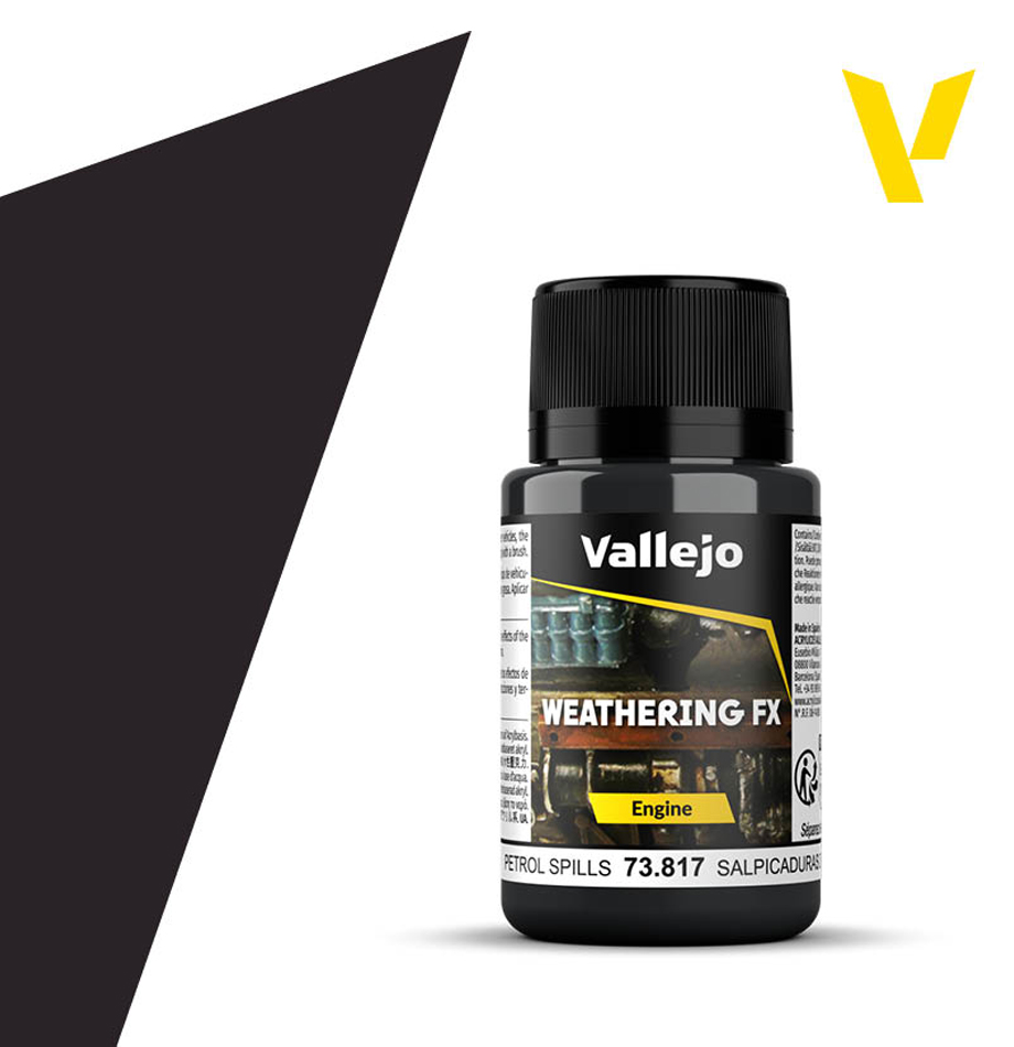 Weathering Effects: Petrol Spills відтворює інтенсивний синьо-чорний відтінок, що спостерігається у важких нафтопродуктах, мастильних матеріалах, на бочках у кузові вантажівки та круглих слідах від бочок на землі, залишених вогнеметами та бойовими машинами.
